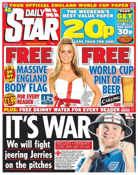 Then today, pondering the prospects of the England/Germany World Cup soccer match the two leading tabloids from Left (Mirror) and Right (Star) we have this: