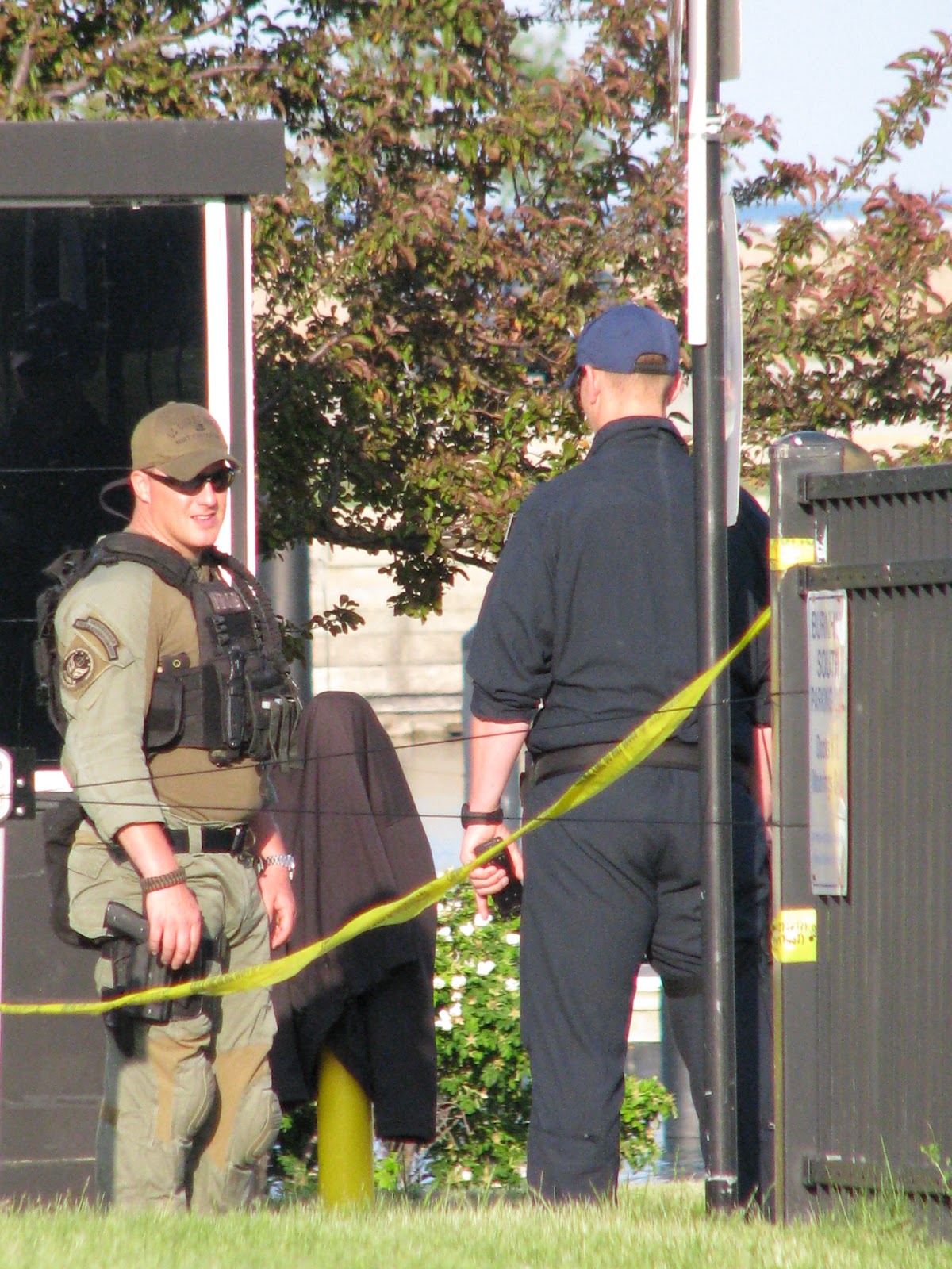 Before we get to the photos, here is how the dignitary / head of state transportation is working! The military and Homeland Security helicopters meet the honored guests at area airports. Those airports are O'Hare, Chicago Executive, Rockford, and one other airport that is unconfirmed. They then fly the guests to Northerly Island (used to be Meigs Field) at Burnham Harbor, where they are are then transported under heavily armed guard using U.S. Government buses and unmarked vans to the old McCormick Place. They are then taken into and through that building to the new McCormick Place and they are also taken DIRECTLY to the NEW McCormick Place building thus bypassing the old McCormick Place and escorted into an entrance just to the North of the public entrance. (all of this was personally observed). This can also be confirmed by way of the NATO Security Transportation Plan PDF file at the Shortwave America NATO Communications Guide and Live Communications Coverage post.